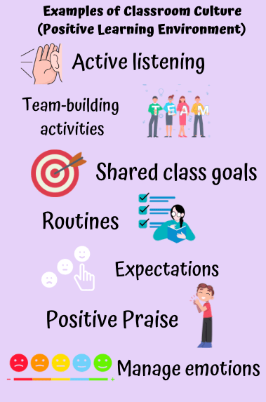Classroom climate is the psychological things such as the teacher’s behaviors or actions for or with their students. Examples are providing a diverse, fair, equitable, and trustworthy student environment. Creating and following the most current and proven effective teaching practices and safety precautions and following through with expectations will improve your classroom climate. We are constantly told that building relationships is the key to classroom management, but it is challenging to create a relationship with over 500 students; therefore, we must build those relationships within a lesson by focusing on student’s strengths, supporting students in and out of our classrooms (sharing them with the PE teacher during track, or other clubs) and by forming relationships with their parents. Your time is best spent building relationships with parents via Remind, Seesaw, and Class Dojo, apps where you can share what the students are doing collectively versus individual attention. In my classroom, I frequently adapt the phrase “we don’t do that in here” because I often have to remind students that I am not their classroom teacher, their PE teacher, or their fill-in-the-blank teacher so that they remember what I expect in my classroom. Lastly, spending time within a lesson to focus on students’ social-emotional growth is always an investment in time well spent. It promotes buy-in, celebrates their successes, and reminds them that your space is safe.
